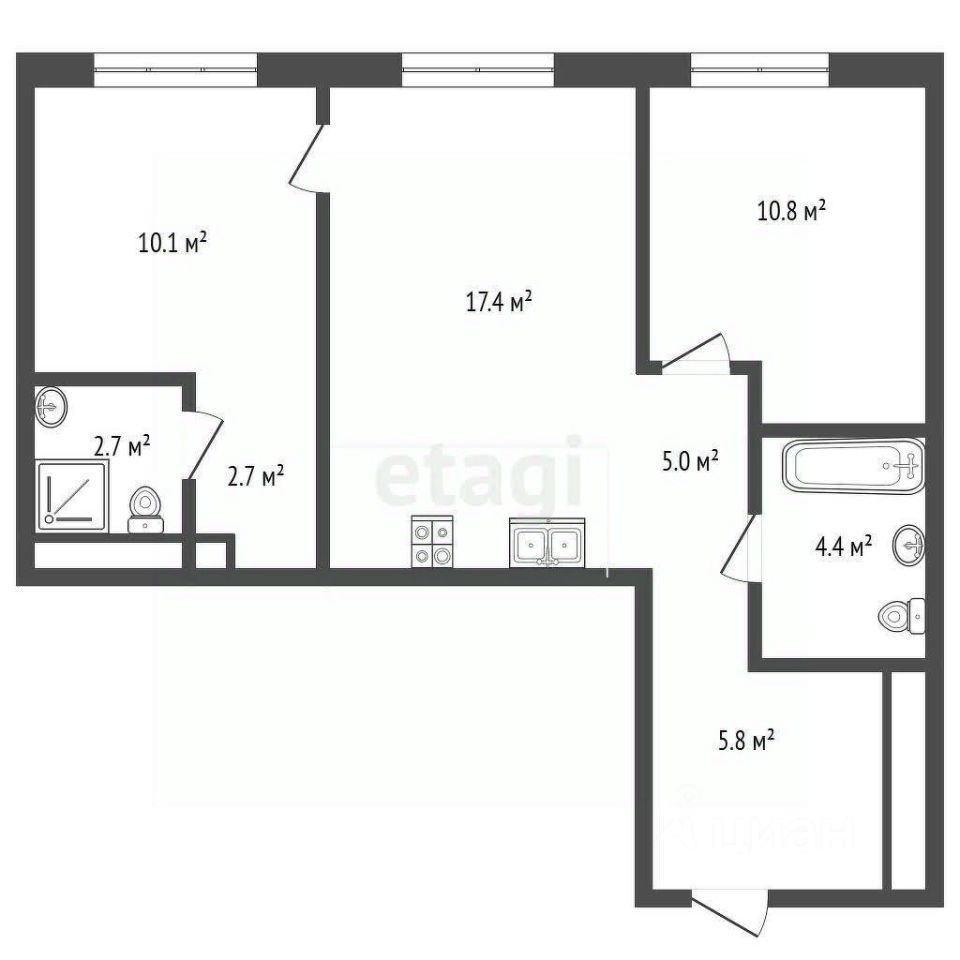 Продаю квартиру формата 2+ с родительской спальней. Планировка квартиры правильной формы,легко можно зонировать, с увеличенными оконными проемами.