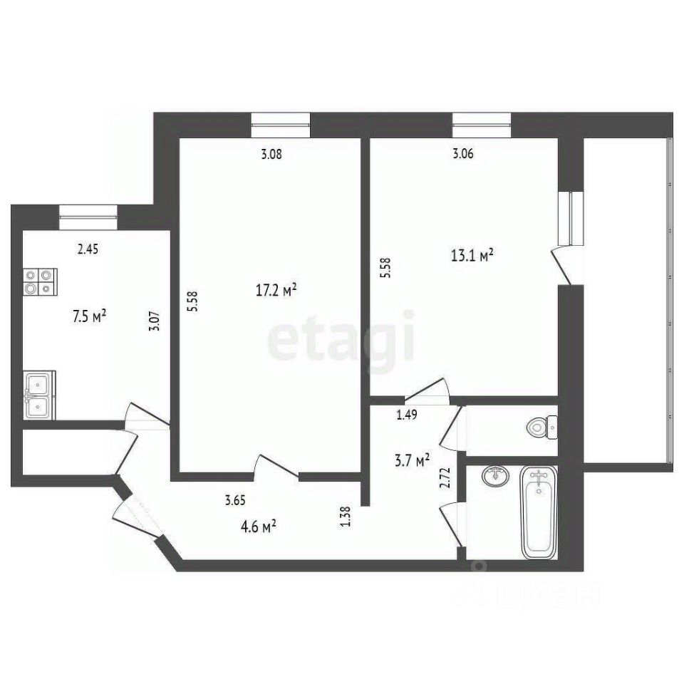 Квартира представляет собой практичный вариант для комфортного проживания с высоким уровнем доступности ключевых городских объектов и сервисов.