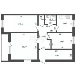 Просторная трехкомнатная квартира в селе Исетское, готовая для комфортного проживания большой семьи, предлагает рациональное использование пространства и продуманную планировку.