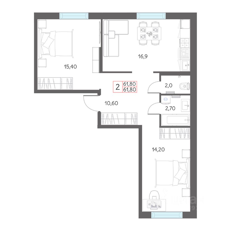 Продаётся 2-комнатная квартира в строящемся доме (ГП-1 (Дом 29)), срок сдачи: I-кв. 2027, общей площадью 61.8 кв.м., на 2 этаже. Рассвет в Тобольске - это жилой комплекс из 4 домов, расположенный в границах улиц Нефтехимиков и Александра Абдулова, созданный для семейного проживания.