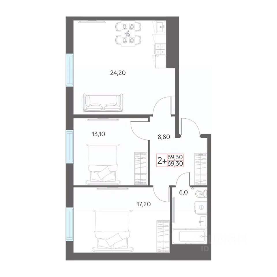 Продаётся 2-комнатная квартира в строящемся доме (ГП-1 (Дом 29)), срок сдачи: I-кв. 2027, общей площадью 69.3 кв.м., на 1 этаже. Рассвет в Тобольске - это жилой комплекс из 4 домов, расположенный в границах улиц Нефтехимиков и Александра Абдулова, созданный для семейного проживания.