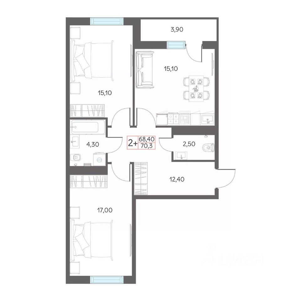Продаётся 2-комнатная квартира в строящемся доме (ГП-1 (Дом 29)), срок сдачи: I-кв. 2027, общей площадью 70.3 кв.м., на 8 этаже. Рассвет в Тобольске - это жилой комплекс из 4 домов, расположенный в границах улиц Нефтехимиков и Александра Абдулова, созданный для семейного проживания.