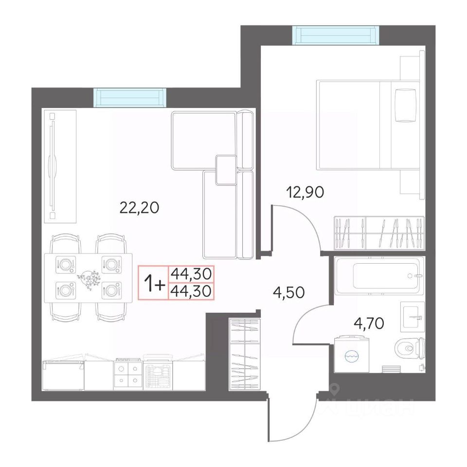 Продаётся 1-комнатная квартира в строящемся доме (ГП-1 (Дом 29)), срок сдачи: I-кв. 2027, общей площадью 44.3 кв.м., на 1 этаже. Рассвет в Тобольске - это жилой комплекс из 4 домов, расположенный в границах улиц Нефтехимиков и Александра Абдулова, созданный для семейного проживания.