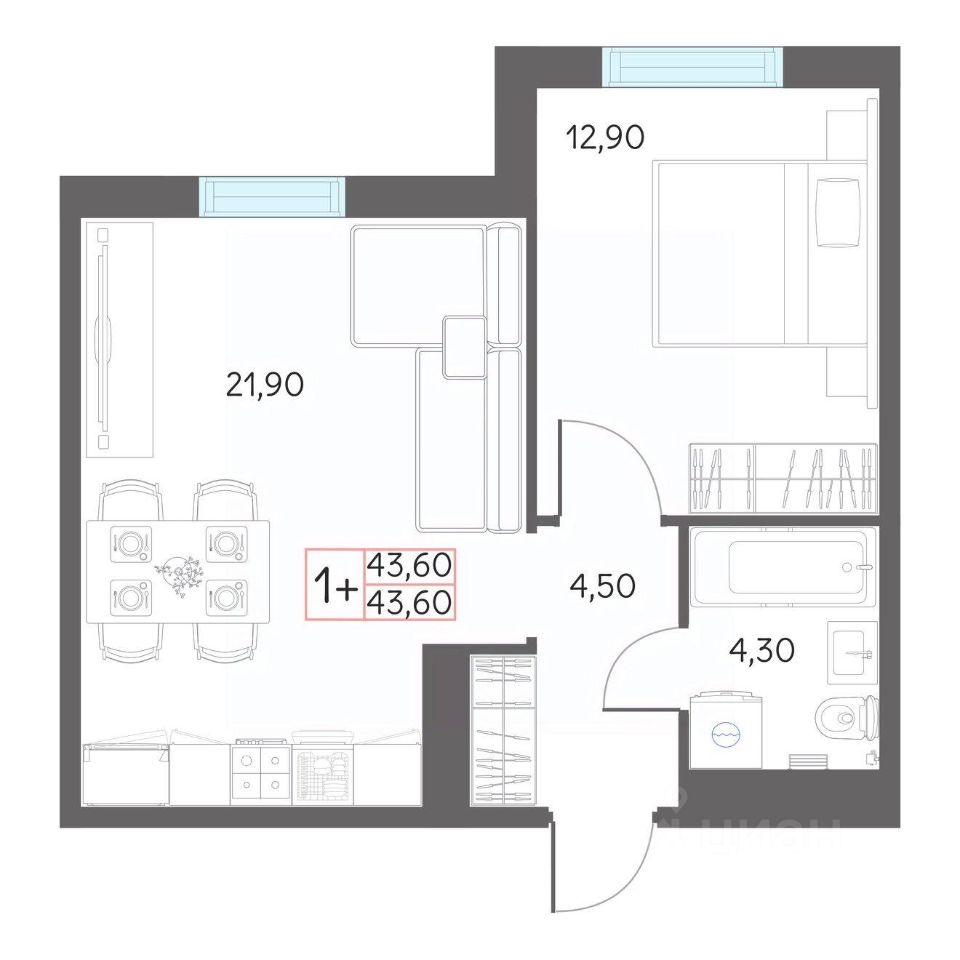 Продаётся 1-комнатная квартира в строящемся доме (ГП-1 (Дом 29)), срок сдачи: I-кв. 2027, общей площадью 43.6 кв.м., на 2 этаже. Рассвет в Тобольске - это жилой комплекс из 4 домов, расположенный в границах улиц Нефтехимиков и Александра Абдулова, созданный для семейного проживания.