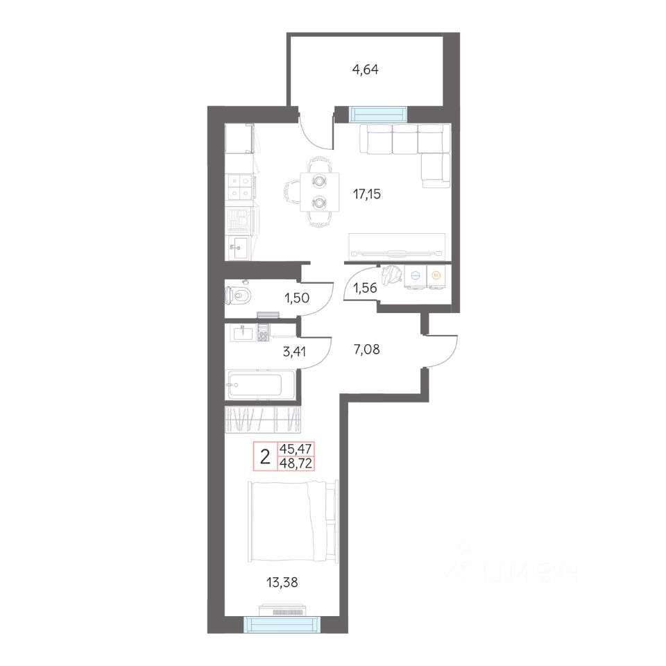 Продаётся 1-комнатная квартира в строящемся доме (ГП-1 (Дом 29)), срок сдачи: I-кв. 2027, общей площадью 48.72 кв.м., на 6 этаже. Рассвет в Тобольске - это жилой комплекс из 4 домов, расположенный в границах улиц Нефтехимиков и Александра Абдулова, созданный для семейного проживания.