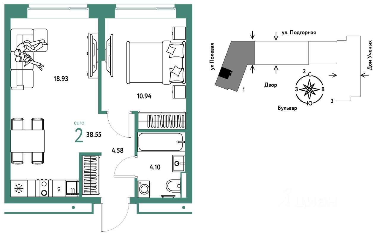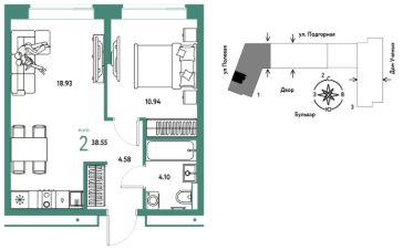 Продается 2комнатная квартира на 6 этаже от застройщика Страна Девелопмент. Площадь квартиры 38,55 кв. м.