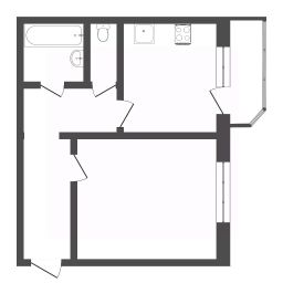 Остается кухонный гарнитур с кухонной техникой и встроенный шкаф.