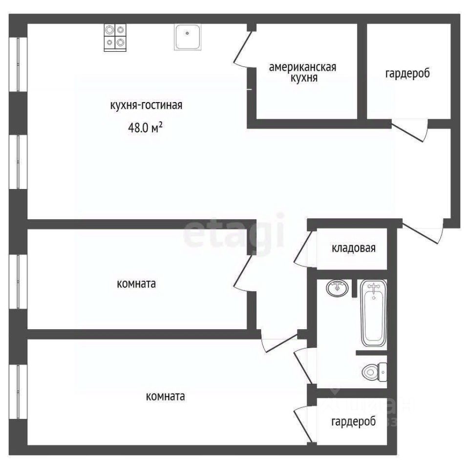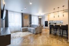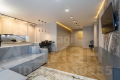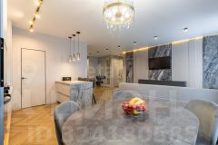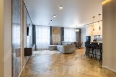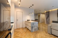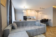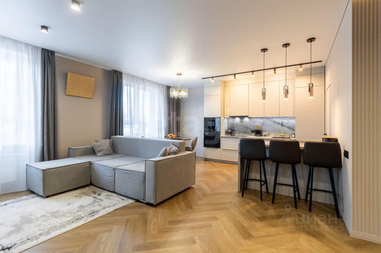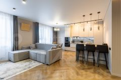 Квартира оформлена в современном дизайнерском стиле, который сочетает в себе элегантность и практичность. Просторная кухня-гостиная станет центром семейных встреч и дружеских посиделок, а отдельные комнаты обеспечат уединение и комфорт для каждого члена семьи.