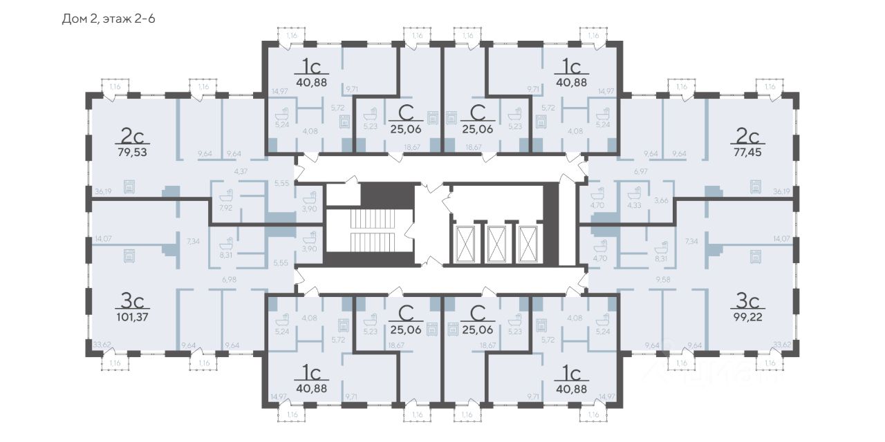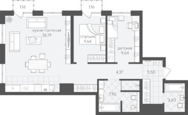 Квартира с двумя спальнями площадью 79.53 кв.м на 5 этаже с продуманной планировкой. Площадь квартиры условно разделена на гостевую зону и личное пространство только для вас и вашей семьи.
