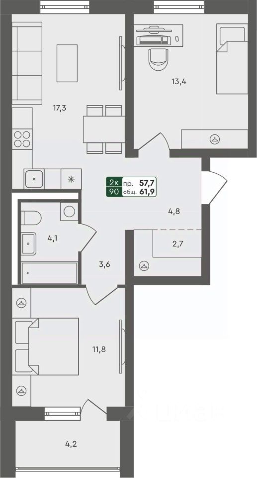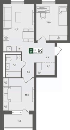 Продаётся 2-комнатная квартира в строящемся доме (ГП-3 (Бульварная, 2)), срок сдачи: IV-кв. 2025, общей площадью 61.5 кв.м., на 1 этаже. Проект в формате "Дома не выше сосен" отражает синтез великолепной архитектуры, престижной инфраструктуры и разумной стоимости. Жилье повышенного качества по доступной цене городского типа (квартиры), таунхаусы и индивидуальные дома с земельными участками характеризуются высокой транспортной доступностью исторического Тобольского тракта и формируют гармоничную и экологичную среду для комфортного проживания.