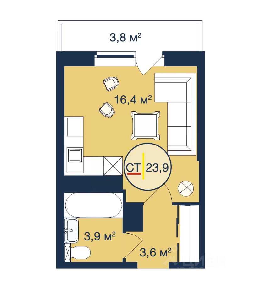 Продаётся 1-комнатная квартира в сданном доме (ГП-1), срок сдачи: I-кв. 2023, общей площадью 23.9 кв.м., на 8 этаже.