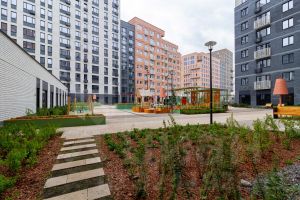 Во дворах установлены детские площадки для разных возрастов, воркаут-зоны, появятся зоны релакса и арт-объекты. Сквозные парадные с прозрачными входными группами обеспечивают естественное освещение и дополнительную безопасность, а для максимального комфорта в любое время года домофон установлен в теплом тамбуре. Парадные выполнены по индивидуальному дизайн-проекту, создавая комфорт с первой секунды. В каждой парадной предусмотрены колясочные и велосипедные с ограничением доступа.