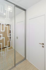 В коридоре установлен вместительный шкаф-купе с зеркалами.