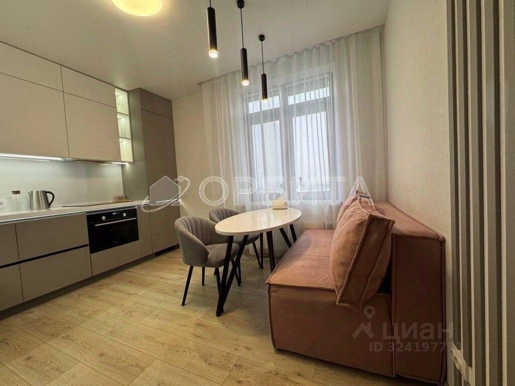 Встроенная бытовая техника на кухне, духовка+микроволновка 2в1. Подсветка по верхним и нижним шкафам кухни, точечное освещение над обеденной зоной. Стол - искусственный камень как столешница.
