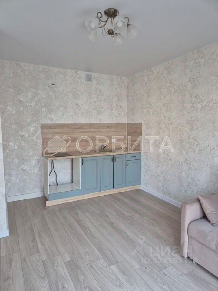 Интересная планировка для малогабаритной квартиры: кухня-гостиная с панорамным окном на балкон и отдельная спальня 10 м2.В квартире выполнен современный ремонт в светлых тонах, установлен небольшой кухонный гарнитур, шкаф-купе с нишей под стиральную машинку.