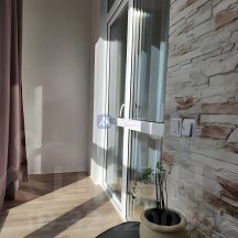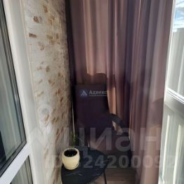 Утепленный балкон, оборудованный как зона отдыха: панорамное остекление (тройной стеклопакет), электробатарея и теплый пол.