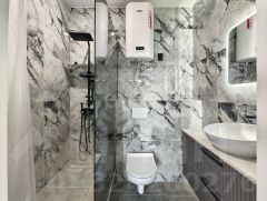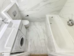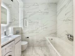 • Светлые стены, современная отделка, в ванной — керамогранит, во всей квартире — качественные материалы.