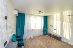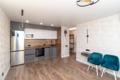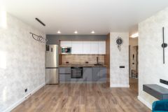 Квартира формата 1+, т. е. с кухней-гостиной , современный формат "евродвушки". Ремонт сделан из дорогостоящих материалов, все делали "для себя", но в связи с расширением семьи переехали в большую квартиру.