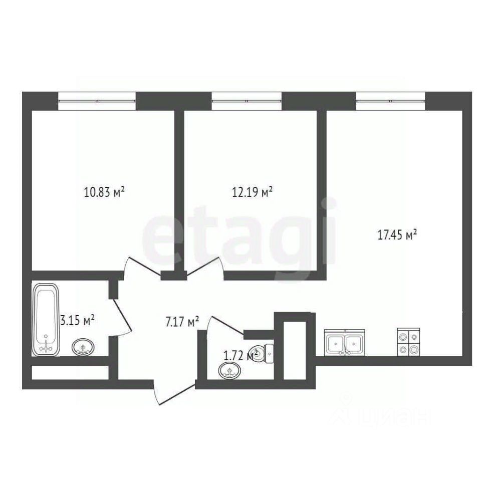 Квартира расположена на комфортном 3м этаже четырехэтажного дома. Высота потолков 2,7м. Стены и потолки выровнены. Вертикальная разводка отопления, разводка электропроводки с установкой розеток и выключателей. Качественная входная дверь. Установлены приборы учёта воды и электрической энергии. Просторная кухня 17.45 метров, комнаты-спальни 10.83 и 12.19 метров, два санузла, один из которых можно использовать под гардиробную.