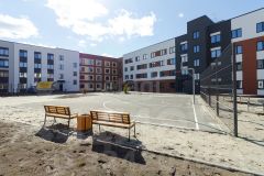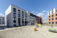 Жилой комплекс представляет собой комплексную застройку. Благоустройство прилегающей территории включает в себя организацию игровых и спортивных площадок для детей всех возрастов, гостевой автостоянки, а также озеленение. В шаговой доступности детский сад, школа, продуктовые магазины, остановка общественного транспорта, остановка электрички. Ввод в эксплуатацию 1 очереди назначен на 1 квартал 2025 года.