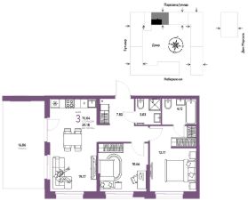 Продается 3комнатная квартира на 13 этаже от застройщика Страна Девелопмент. Площадь квартиры 76,04 кв. м. Стоимость указана без учета акций.