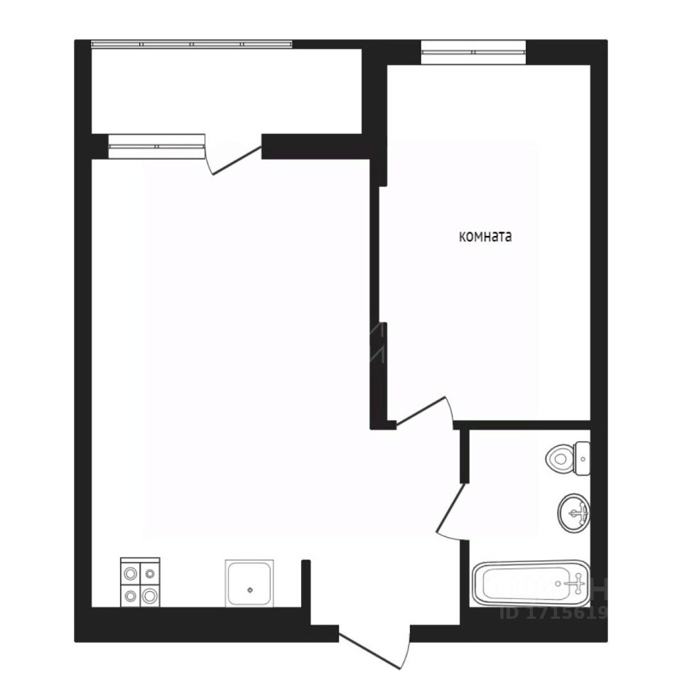 Формат 1 (46,4 м²) просторная кухня-гостиная 22 м² с выходом на балкон