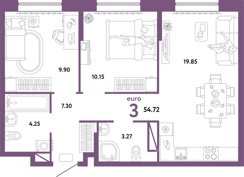 Продаётся 3-комнатная квартира в строящемся доме (ГП-2 (Дом Форум)), срок сдачи: IV-кв. 2025, общей площадью 54.72 кв.м., на 3 этаже. Жилой комплекс "Юнион" - многоэтажные жилые дома с объектами инфраструктуры в границах улиц Интернациональная, Объездная дорога г. Тюмень от застройщика ГК Страна Девелопмент.