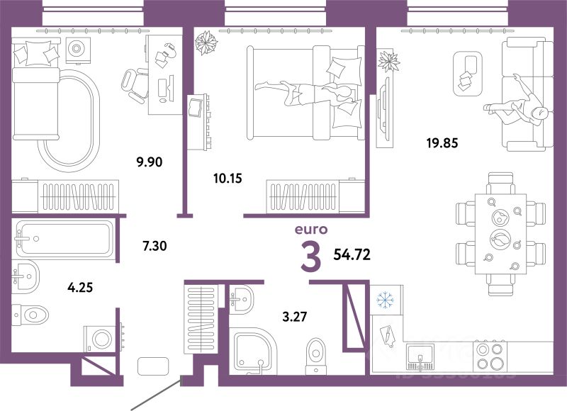 Продаётся 3-комнатная квартира в строящемся доме (ГП-2 (Дом Форум)), срок сдачи: IV-кв. 2025, общей площадью 54.72 кв.м., на 8 этаже. Жилой комплекс "Юнион" - многоэтажные жилые дома с объектами инфраструктуры в границах улиц Интернациональная, Объездная дорога г. Тюмень от застройщика ГК Страна Девелопмент.