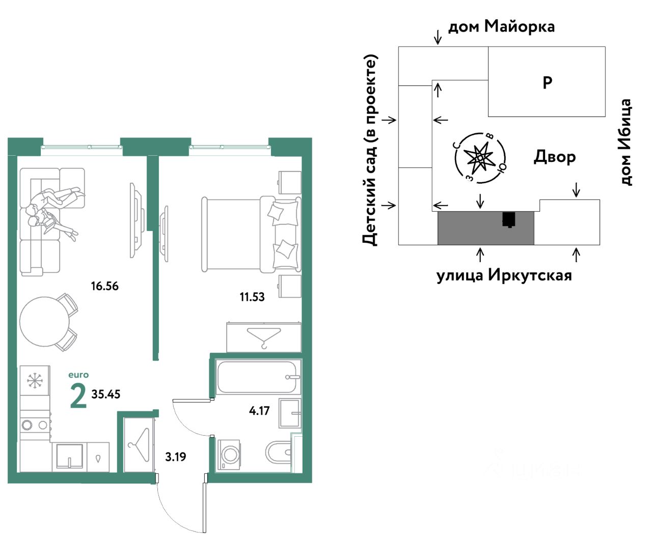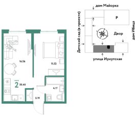 Продаётся 2-комнатная квартира в строящемся доме (Дом Тенерифе (ГП-2Я)), срок сдачи: IV-кв. 2027, общей площадью 35.45 кв.м., на 2 этаже. Новый жилой комплекс "Остров-сад" от Специализированного застройщика "Страна. Коммунистическая" расположен по адресу: г. Тюмень, по ул. Ярославская.