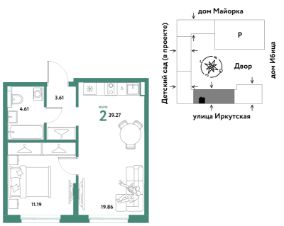 Продаётся 2-комнатная квартира в строящемся доме (Дом Тенерифе (ГП-2Я)), срок сдачи: IV-кв. 2027, общей площадью 39.27 кв.м., на 2 этаже. Новый жилой комплекс "Остров-сад" от Специализированного застройщика "Страна. Коммунистическая" расположен по адресу: г. Тюмень, по ул. Ярославская.