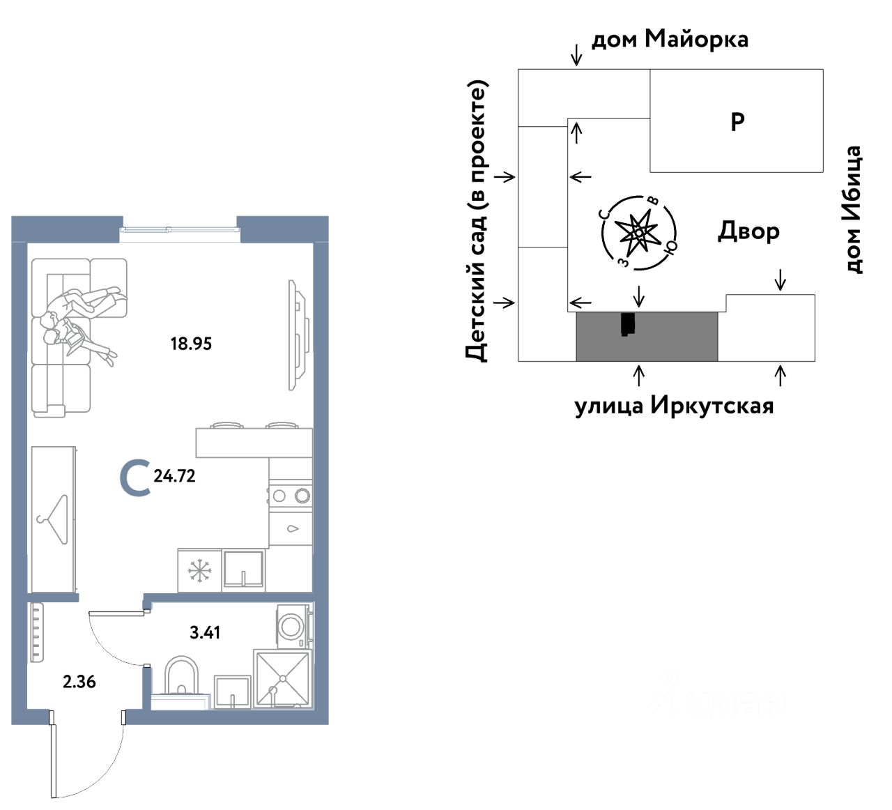 Продаётся студия в строящемся доме (Дом Тенерифе (ГП-2Я)), срок сдачи: IV-кв. 2027, общей площадью 24.72 кв.м., на 2 этаже. Новый жилой комплекс "Остров-сад" от Специализированного застройщика "Страна. Коммунистическая" расположен по адресу: г. Тюмень, по ул. Ярославская.