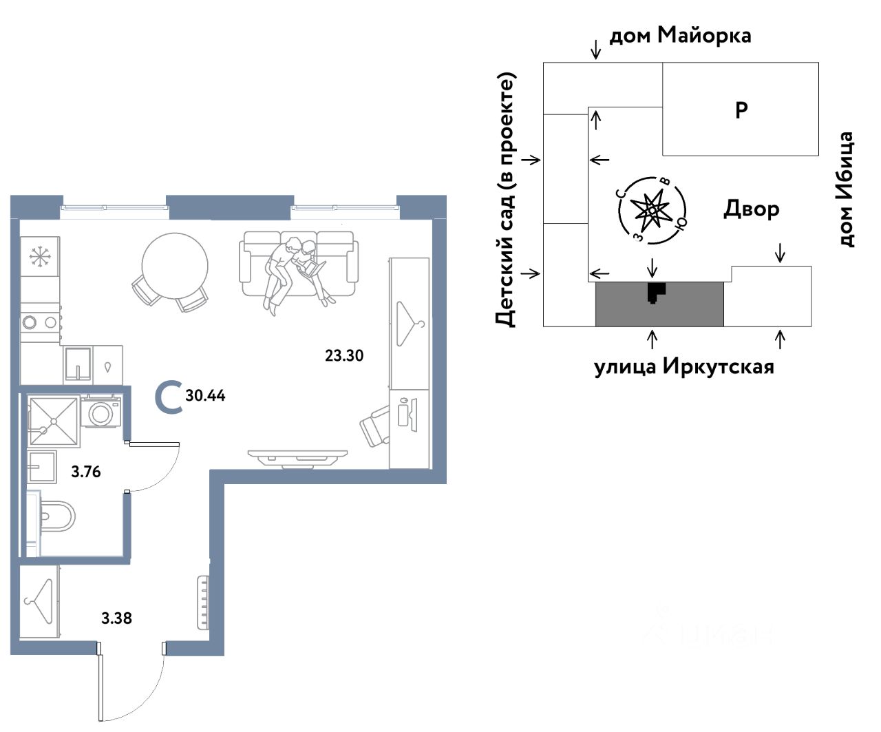 Продаётся студия в строящемся доме (Дом Тенерифе (ГП-2Я)), срок сдачи: IV-кв. 2027, общей площадью 30.44 кв.м., на 2 этаже. Новый жилой комплекс "Остров-сад" от Специализированного застройщика "Страна. Коммунистическая" расположен по адресу: г. Тюмень, по ул. Ярославская.
