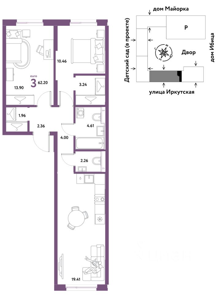 Продаётся 3-комнатная квартира в строящемся доме (Дом Тенерифе (ГП-2Я)), срок сдачи: IV-кв. 2027, общей площадью 62.2 кв.м., на 5 этаже. Новый жилой комплекс "Остров-сад" от Специализированного застройщика "Страна. Коммунистическая" расположен по адресу: г. Тюмень, по ул. Ярославская.