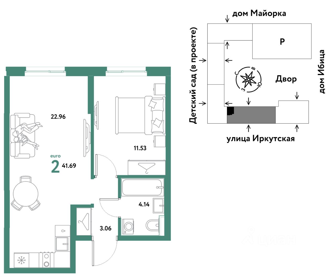 Продаётся 2-комнатная квартира в строящемся доме (Дом Тенерифе (ГП-2Я)), срок сдачи: IV-кв. 2027, общей площадью 41.69 кв.м., на 7 этаже. Новый жилой комплекс "Остров-сад" от Специализированного застройщика "Страна. Коммунистическая" расположен по адресу: г. Тюмень, по ул. Ярославская.