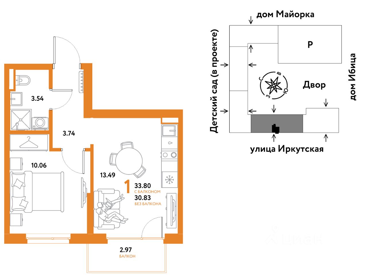 Общая площадь33,8 м²