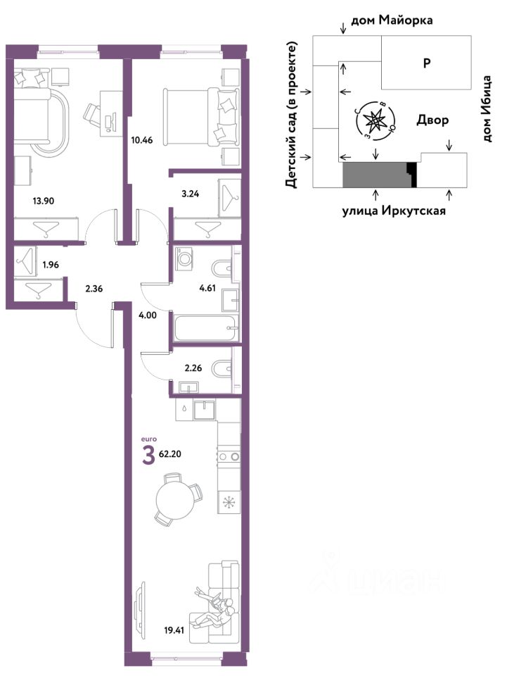 Продаётся 3-комнатная квартира в строящемся доме (Дом Тенерифе (ГП-2Я)), срок сдачи: IV-кв. 2027, общей площадью 62.2 кв.м., на 12 этаже. Новый жилой комплекс "Остров-сад" от Специализированного застройщика "Страна. Коммунистическая" расположен по адресу: г. Тюмень, по ул. Ярославская.