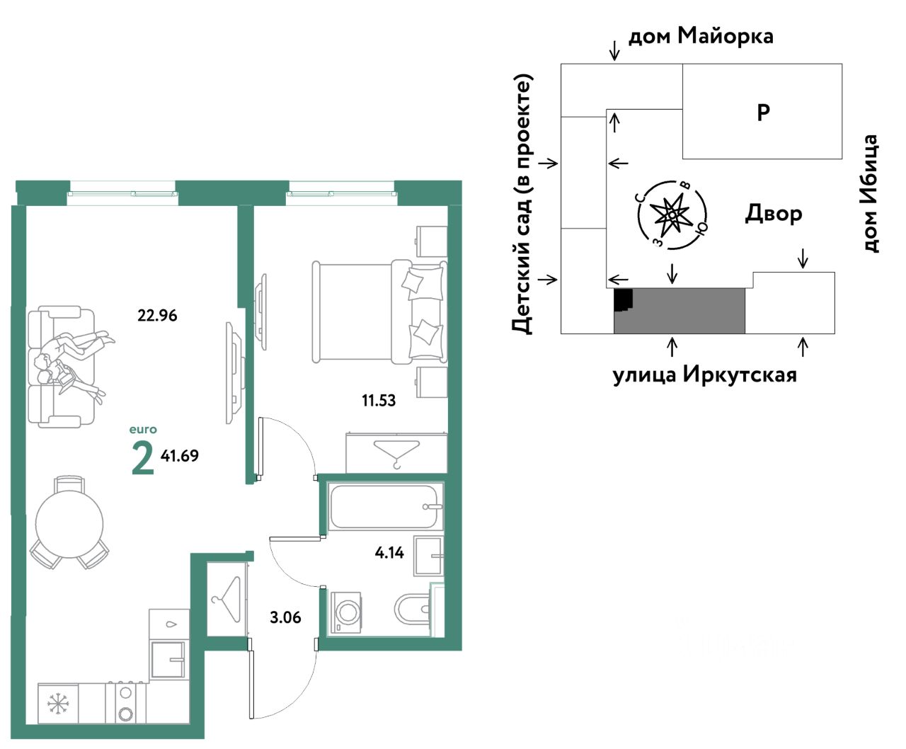 Продаётся 2-комнатная квартира в строящемся доме (Дом Тенерифе (ГП-2Я)), срок сдачи: IV-кв. 2027, общей площадью 41.69 кв.м., на 12 этаже. Новый жилой комплекс "Остров-сад" от Специализированного застройщика "Страна. Коммунистическая" расположен по адресу: г. Тюмень, по ул. Ярославская.