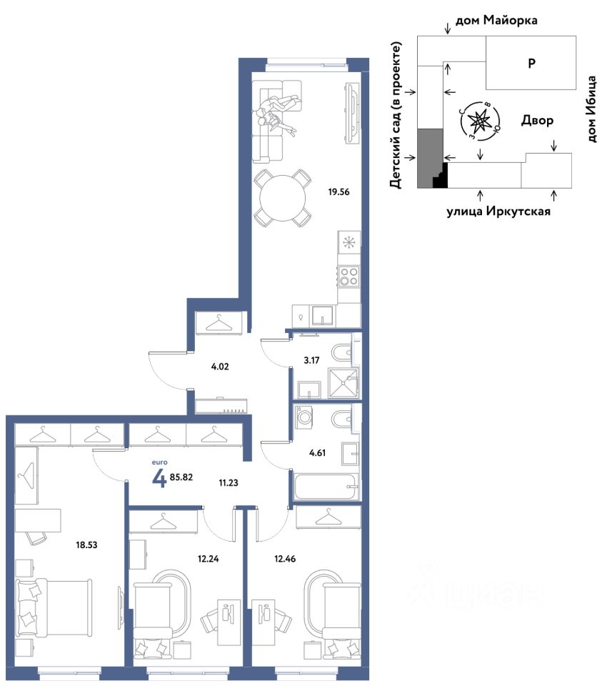 Продаётся 4-комнатная квартира в строящемся доме (Дом Тенерифе (ГП-2Я)), срок сдачи: IV-кв. 2027, общей площадью 85.82 кв.м., на 4 этаже. Новый жилой комплекс "Остров-сад" от Специализированного застройщика "Страна. Коммунистическая" расположен по адресу: г. Тюмень, по ул. Ярославская.