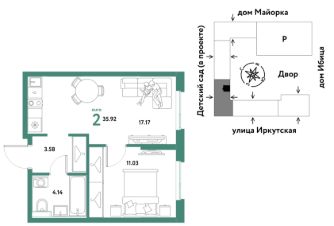 Продаётся 2-комнатная квартира в строящемся доме (Дом Тенерифе (ГП-2Я)), срок сдачи: IV-кв. 2027, общей площадью 35.92 кв.м., на 6 этаже. Новый жилой комплекс "Остров-сад" от Специализированного застройщика "Страна. Коммунистическая" расположен по адресу: г. Тюмень, по ул. Ярославская.