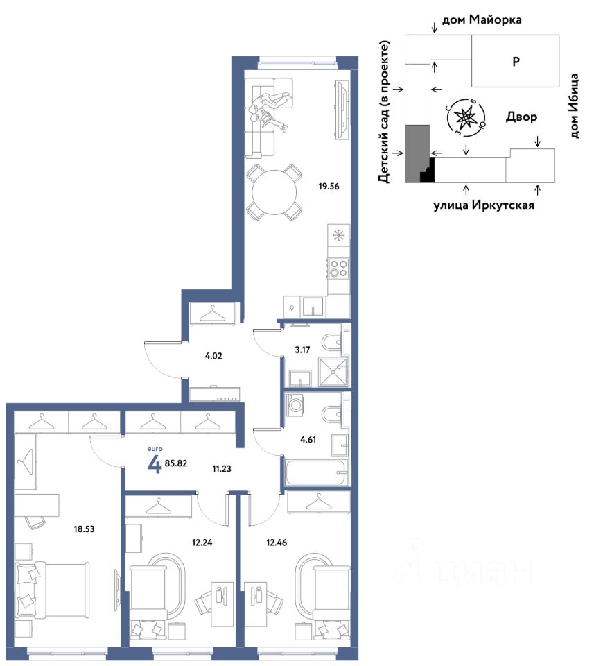 Продаётся 4-комнатная квартира в строящемся доме (Дом Тенерифе (ГП-2Я)), срок сдачи: IV-кв. 2027, общей площадью 85.82 кв.м., на 7 этаже. Новый жилой комплекс "Остров-сад" от Специализированного застройщика "Страна. Коммунистическая" расположен по адресу: г. Тюмень, по ул. Ярославская.
