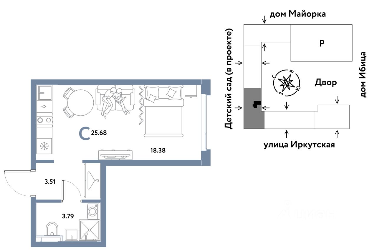 Продаётся студия в строящемся доме (Дом Тенерифе (ГП-2Я)), срок сдачи: IV-кв. 2027, общей площадью 25.68 кв.м., на 9 этаже. Новый жилой комплекс "Остров-сад" от Специализированного застройщика "Страна. Коммунистическая" расположен по адресу: г. Тюмень, по ул. Ярославская.