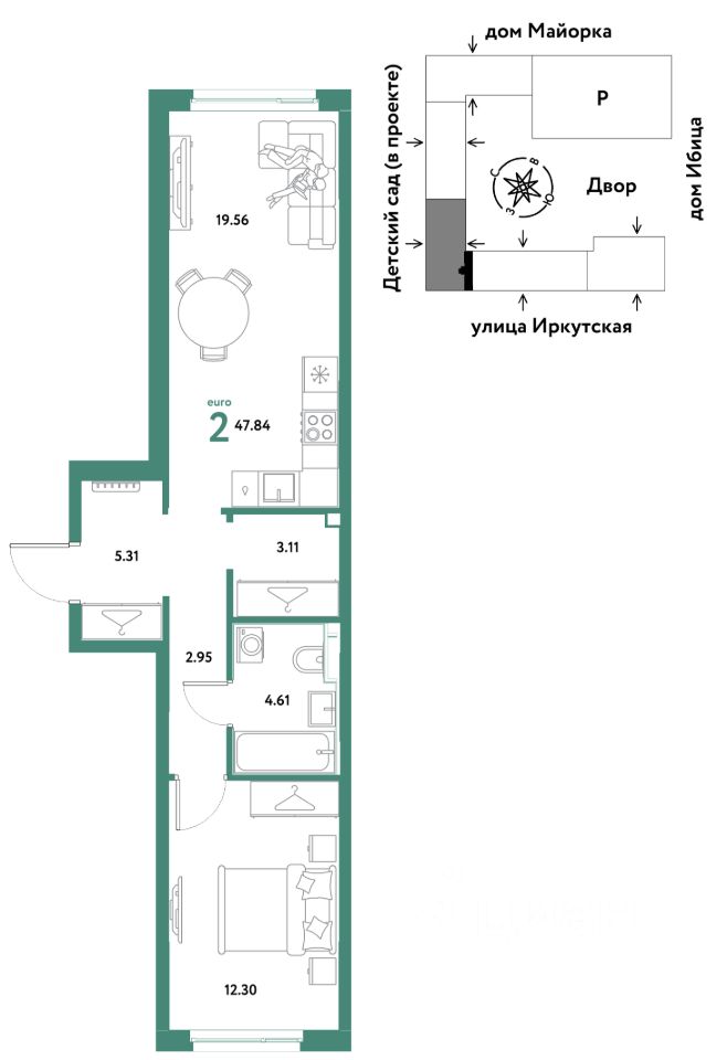 Продаётся 2-комнатная квартира в строящемся доме (Дом Тенерифе (ГП-2Я)), срок сдачи: IV-кв. 2027, общей площадью 47.84 кв.м., на 13 этаже. Новый жилой комплекс "Остров-сад" от Специализированного застройщика "Страна. Коммунистическая" расположен по адресу: г. Тюмень, по ул. Ярославская.
