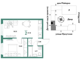 Продаётся 2-комнатная квартира в строящемся доме (Дом Тенерифе (ГП-2Я)), срок сдачи: IV-кв. 2027, общей площадью 37.19 кв.м., на 13 этаже. Новый жилой комплекс "Остров-сад" от Специализированного застройщика "Страна. Коммунистическая" расположен по адресу: г. Тюмень, по ул. Ярославская.