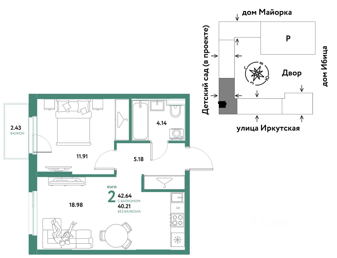 42,64 м²