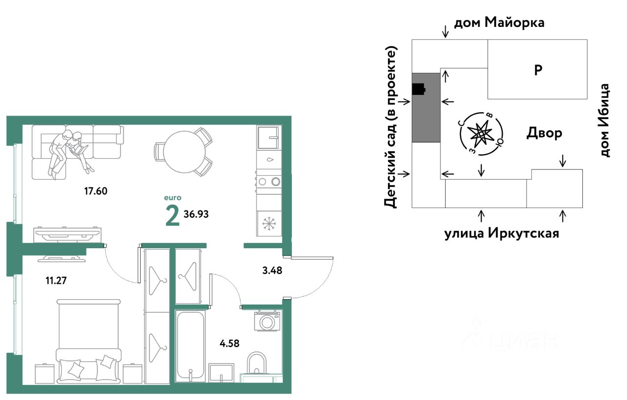 Продаётся 2-комнатная квартира в строящемся доме (Дом Тенерифе (ГП-2Я)), срок сдачи: IV-кв. 2027, общей площадью 36.93 кв.м., на 2 этаже. Новый жилой комплекс "Остров-сад" от Специализированного застройщика "Страна. Коммунистическая" расположен по адресу: г. Тюмень, по ул. Ярославская.