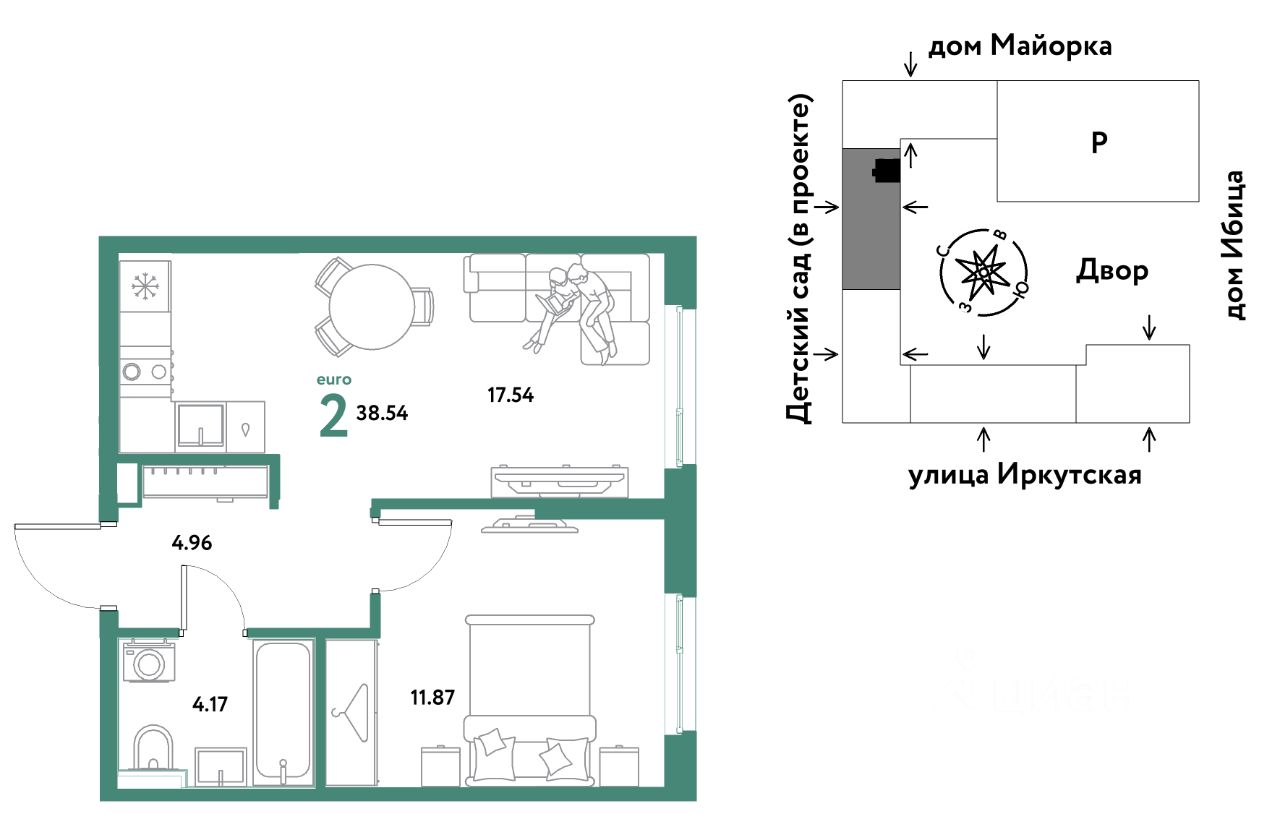 Продаётся 2-комнатная квартира в строящемся доме (Дом Тенерифе (ГП-2Я)), срок сдачи: IV-кв. 2027, общей площадью 38.54 кв.м., на 4 этаже. Новый жилой комплекс "Остров-сад" от Специализированного застройщика "Страна. Коммунистическая" расположен по адресу: г. Тюмень, по ул. Ярославская.