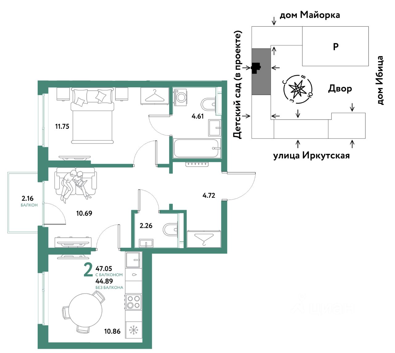 47,05 м²