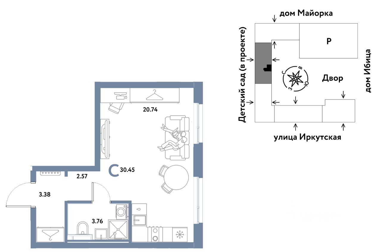 Продаётся студия в строящемся доме (Дом Тенерифе (ГП-2Я)), срок сдачи: IV-кв. 2027, общей площадью 30.45 кв.м., на 10 этаже. Новый жилой комплекс "Остров-сад" от Специализированного застройщика "Страна. Коммунистическая" расположен по адресу: г. Тюмень, по ул. Ярославская.