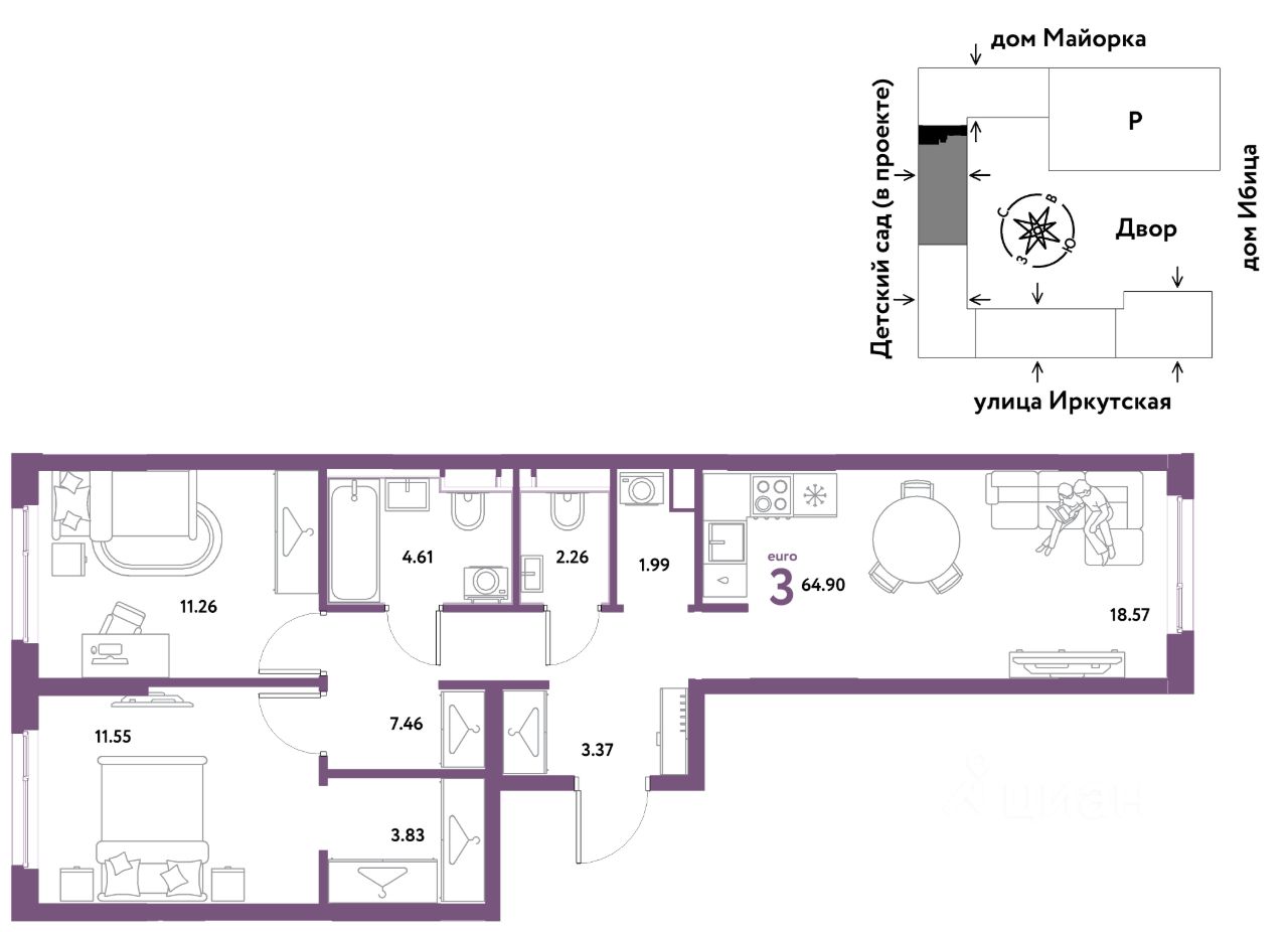 Продаётся 3-комнатная квартира в строящемся доме (Дом Тенерифе (ГП-2Я)), срок сдачи: IV-кв. 2027, общей площадью 64.9 кв.м., на 12 этаже. Новый жилой комплекс "Остров-сад" от Специализированного застройщика "Страна. Коммунистическая" расположен по адресу: г. Тюмень, по ул. Ярославская.