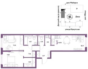 Продаётся 3-комнатная квартира в строящемся доме (Дом Тенерифе (ГП-2Я)), срок сдачи: IV-кв. 2027, общей площадью 64.9 кв.м., на 13 этаже. Новый жилой комплекс "Остров-сад" от Специализированного застройщика "Страна. Коммунистическая" расположен по адресу: г. Тюмень, по ул. Ярославская.